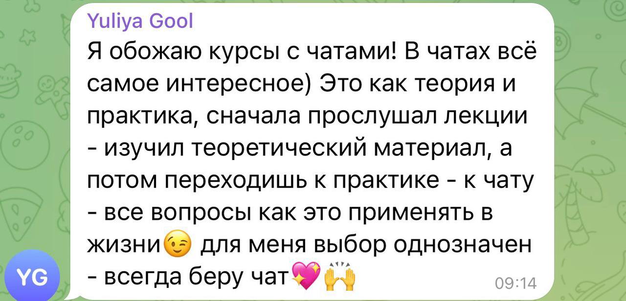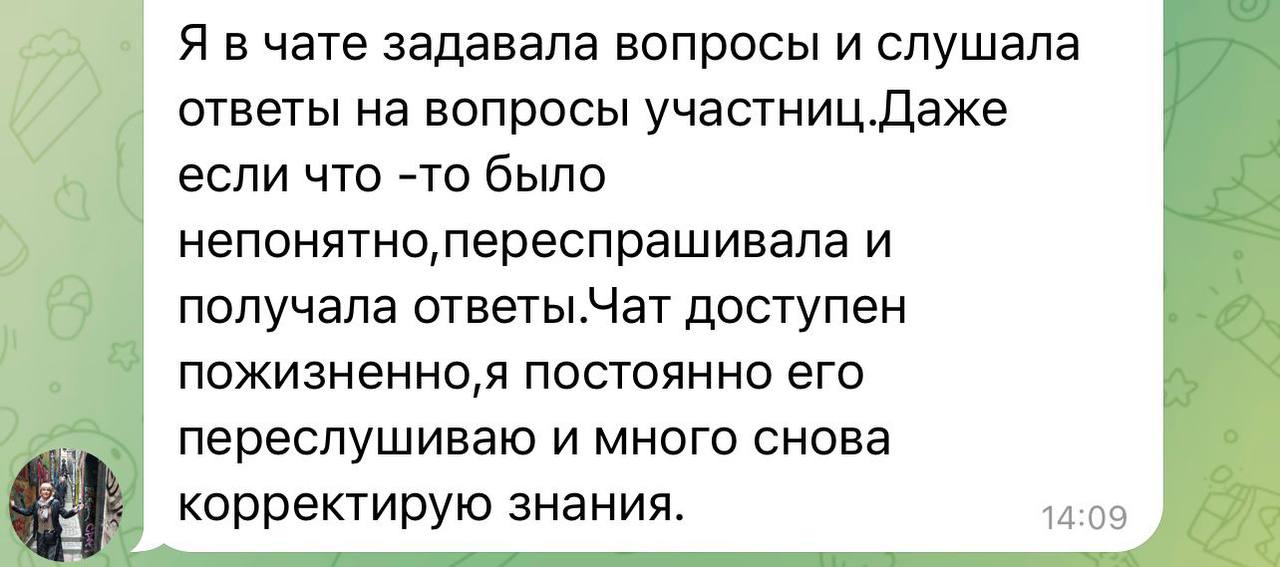 Всем советую пройти этот курс и не забыть приобрести чат поддержки. В чате Вы сможете задать разные вопросы специалистам и получите много дополнительной информации.