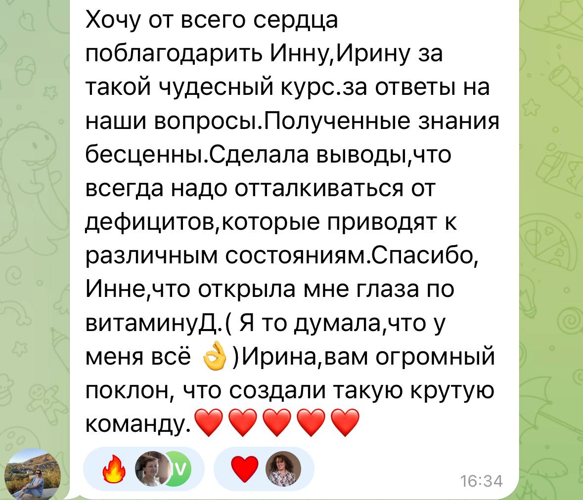 Вчера прям прозрела, действительно учитель появляется тогда, когда готов ученик… смотрела вибинар про Синдром Утомленных Надпочечников (и все остальные), есть методичка… читала и только после чата поняла, что СУН у меня очень давно. Раньше о нем не задумывалась, не принимала во внимание, чем себе очень сильно навредила, что и привело меня к Вам доктора… решила к 40 похудеть (всю жизнь на качелях, испробовала все диеты), села на сушку, ПП, бегала в спортзал 2 раза в день, за 2 месяца минус 10 кг, счастью нет предела, но мне было мало, перешла на кето, потом на палео… ещё минус кг, как- то проснулась утром, а сил нет (у меня аит с гипотериозом, нет желчного), даже с кровати еле сползла, батарейки вынули… потом узнала, что из-за кератоконуса можно без зрения остаться и все срыв, депрессия, зажор, панические атаки, возвращение всех килограмм и остальные прелести, год бездействия, потом сдача анализов и приход к нутрициологам) Раньше считала себя слабовольной и опять рвалась в зал, а после Вашего вибинара, поняла, что этого делать категорически нельзя, спасибо что мозг на место ставите. Простите, просто крик души с благодарностью и низким поклоном ДОКТОРАМ!!!