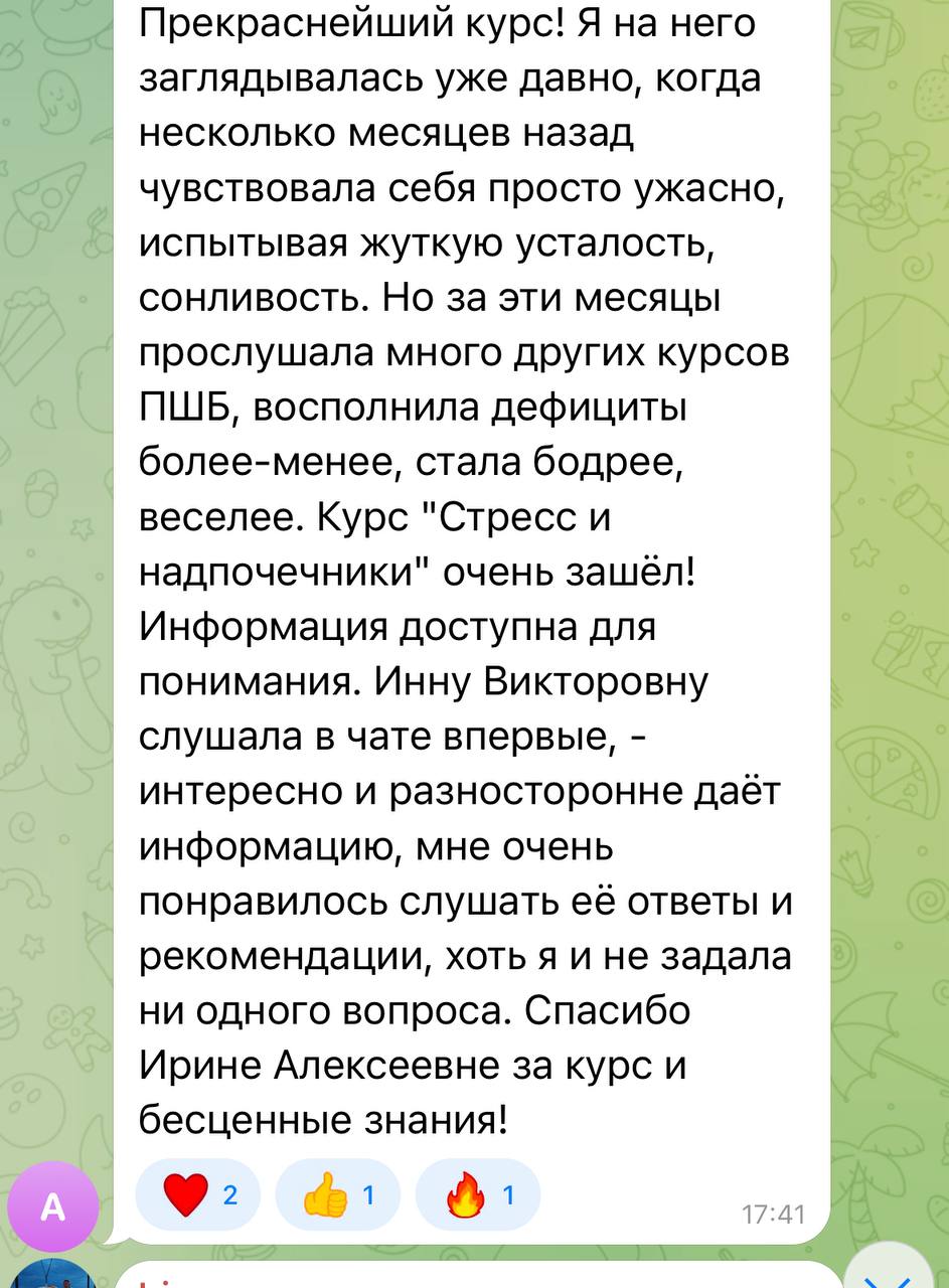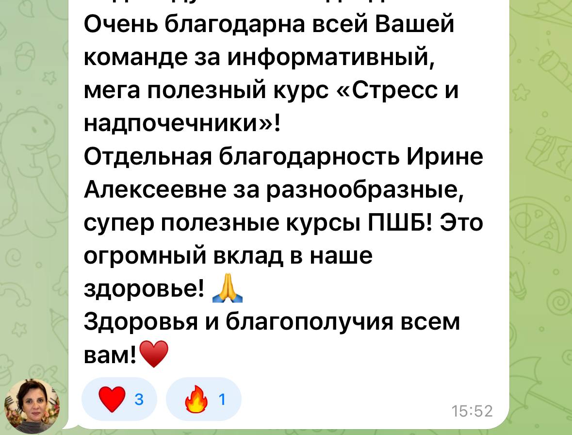 Спасибо ПШБ за создание такого прекрасного курса, как «Стресс и надпочечники». Без взятия стресса под контроль не возможно добиться ощутимых успехов в никакой сфере жизнедеятельности.
